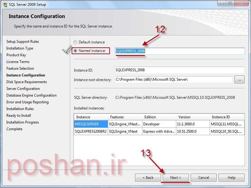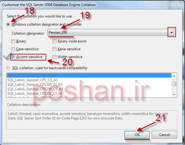 در اين قسمت نحوه اتصال به نمونه Sql را مشخص مي نماييد.