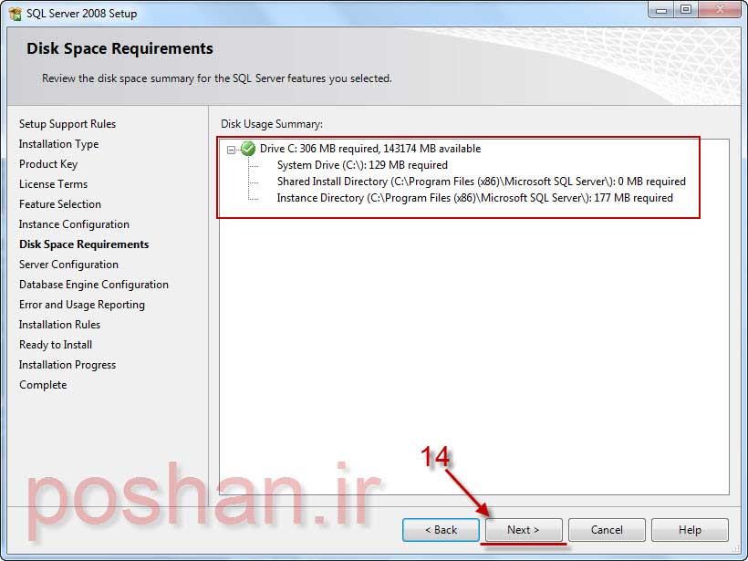 در اين صفحه ظرفيت مورد نياز براي نصب به اطلاع شما مي رساند و اينكه آيا اين مقدار ظرفيت وجود دارد يا خير.